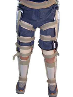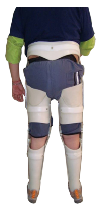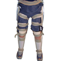 Características: Coxais e afos fabricados em polipropileno, articulações em aço, alumínio, titanium e outros. Articulação de quadril e cinto pelvico acolchado e fechos em velcro.